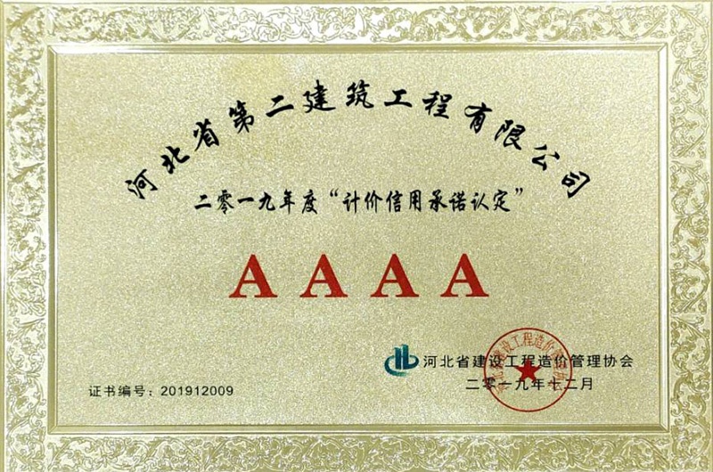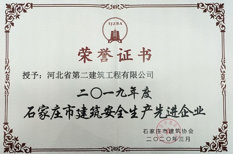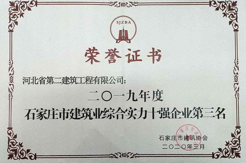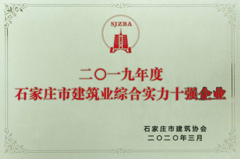 二0一九年度石家庄市建筑业综合实力十强企业第三名