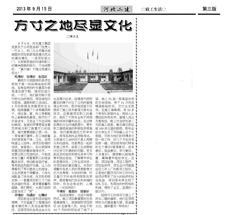公司2013年度最佳文章评选结果揭晓 来源: 修改时间:2014.08.01 浏览:3527 公司2013年度最佳文章评选结果揭晓 根据各单位报送的评选结果并经公司评委会认真研究,2013年度《河北二建》和公司官方网站最佳文章是:2013年9月15日《河北二建》三版刊登的《方寸之地尽显文化》,作者:薛亚良,单位:公司机关。 上一条 返回列表 下一条