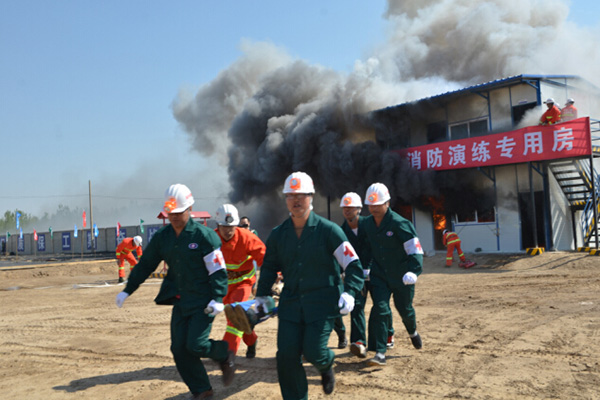 “宿舍着火啦,火势正在蔓延扩大!”公司廊坊地表水厂施工现场一民工宿舍内传来紧急呼救声。“你立即组织人员撤离,疏散组立即组织撤离,保卫组立即拉闸断电并警戒,抢险组进行灭火,救护组准备对受伤人员进行救护,联络组立即报警”救援队长朱宏斌正在发布命令,组织救援.........