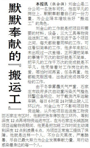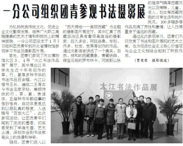 公司2015年1月份最佳文章评选结果揭晓 来源: 修改时间:2015.05.04 浏览:3647 公司2015年1月份最佳文章评选结果揭晓 根据各单位报送的评选结果并经公司评委会认真研究,2015年1月份《河北二建》和公司官方网站最佳文章是:2015年1月15日《河北二建》三版刊登的《一分公司组织团青参观书法摄影展》,作者:贾荣荣,单位:一分公司;三版刊登的《默默奉献的“搬运工”》,作者:张会强,单位:二分公司。 上一条 返回列表 下一条