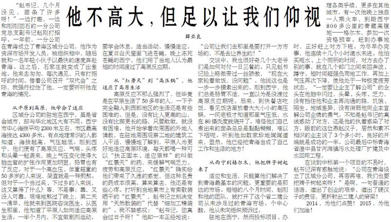 公司2015年4月份最佳文章评选结果揭晓 来源: 修改时间:2015.07.08 浏览:3742 公司2015年4月份最佳文章评选结果揭晓 根据各单位报送的评选结果并经公司评委会认真研究,2015年4月份《河北二建》和公司官方网站最佳文章是:2015年4月15日《河北二建》三版刊登的《他不高大,但足以让我们仰视》,作者:薛亚良,单位:公司机关。 上一条 返回列表 下一条
