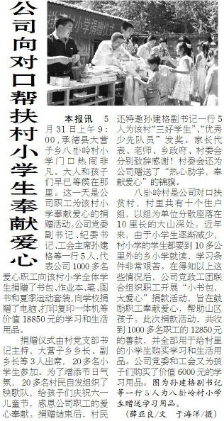 公司2015年6月份最佳文章评选结果揭晓 来源: 修改时间:2015.09.02 浏览:3417 公司2015年6月份最佳文章评选结果揭晓 根据各单位报送的评选结果并经公司评委会认真研究,2015年6月份《河北二建》和公司官方网站最佳文章是:2015年6月15日《河北二建》一版刊登的《公司向对口帮扶村小学生奉献爱心》,作者:薛亚良,单位:公司机关。 上一条 返回列表 下一条