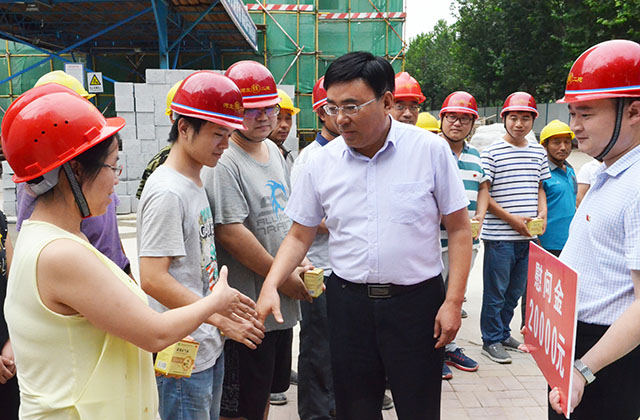 8月8日下午,省直纪工委书记陈彦丰一行到一分公司省委党校项目部,代表省直工委看望慰问了正在工地紧张施工的一线职工。省委党校常务副校长刘忠昌,省直工会经审会主任蔡强,公司党委副书记、纪委书记、工会主席孙建格一同参加。