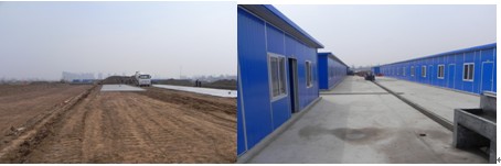 3月3日,平整完施工场地;3月8日,通过与甲方的积极沟通,两台厂区供电变压器正式安装到位;3月15日,临电开始安装;3月20日正式通电, 正式开始挖槽;3月22日,入住临建彩钢房; 3月25日,陪同甲方、勘察院确定地基钎探;3月26日,由项目经理贺佳良及主管工长王天书组织施工队召开第一次安全教育例会;3月27日,生活区正式通水;3月29日,硬化出钢筋加工场地;至月底,厂区内11#、12#、15#、18#、19#、22#、23#楼基槽开挖完毕,其中,11#、18#、19#、22#、23#楼钎探已完毕,12#、15#楼正在进行钎探。至此,在项目部全体人员的团结努力下,施工准备阶段基本结束。
