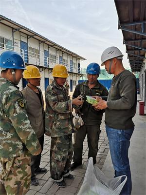 项目经理王占东在例会上强调“高温消耗体力快,而且易引发生病中暑等安全事故,工人的健康和安全是我们要关心的大事,我们要采取必要的措施,迎接高温天气的到来”。为了打好防暑攻坚战,项目部采取了一系列措施,保证工人的身体健康和项目的安全生产。首先,项目管理人员对劳务人员进行高温安全作业教育,让其深入了解防暑降温的有关知识,做好高温条件下的自我保护工作;其次,项目部采购了一批藿香正气水,在给大家普及了用法用量及食用注意事项后,免费分发给劳务人员,并为其每日提供绿豆汤,保障工人体内水分平衡;除此之外,项目部将根据每日气温,合理调整作业时间,安排工人作息,错开中午高温时段作业。