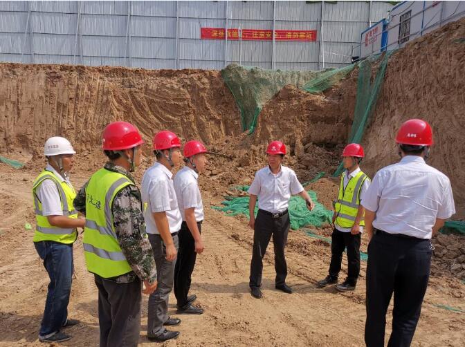 上午到达项目后,郑书记直奔现场,先听取了四分公司和该项目负责人对项目各项工作的情况介绍,随后,便顶着炎炎烈日,到正在施工的深基坑和容易出现安全隐患的施工区域中,查看沟槽的挖掘、临电使用、安全网的搭建、护坡钢丝网搭接等情况。每到一处,郑书记都叮嘱施工作业人员要注意安全,指出可能出现的安全隐患,并要求四分公司和项目管理人员采取必要的安全防护和制定应急措施。他指出,深基坑施工一定要做好安全技术交底,要确保每一步都安全可控,每个分部分项工程都要有完善的、可操作的应急救援预案,确保职工生命健康安全。对检查出的安全隐患,他要求项目立即整改,并责成安全管理部定时验收整改落实情况。