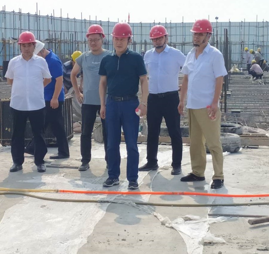 在施工现场,项目经理王建刚详细介绍了工程进展情况以及工地安全文明管理措施落实情况,之后王景虎着重就项目的安全责任、文明施工、施工质量、防暑防汛等方面进行了现场查看,根据现场施工中存在的问题提出了明确的要求。