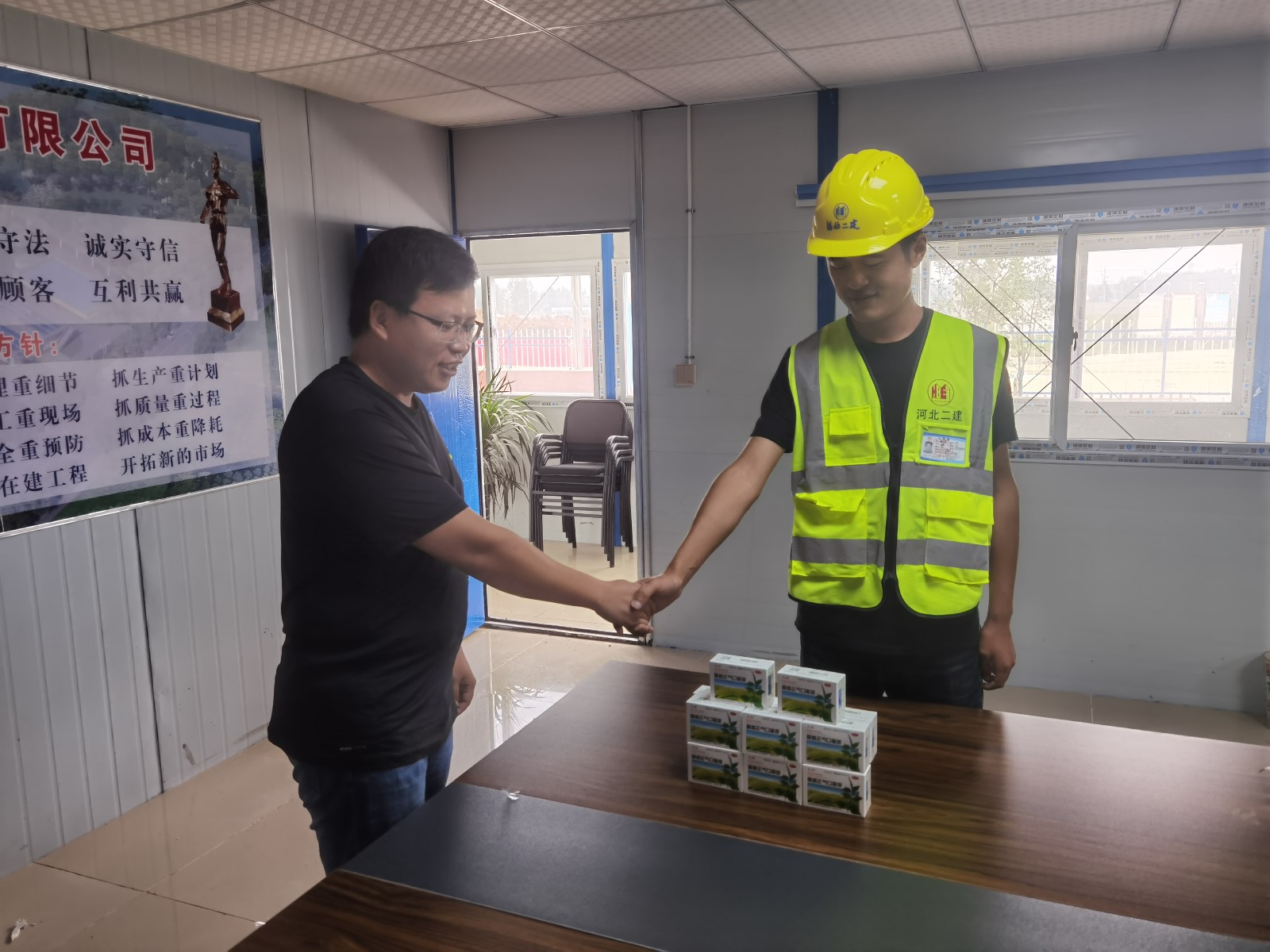 当前,安徽天长地区连续出现降雨天气,之后便会持续的潮湿、闷热。为保障一线施工人员的身体健康,防止中暑等情况的发生,三分公司安徽天长今麦郎项目为现场施工人员统一发放了藿香正气水等防暑药品,为现场的安全施工增添了一份保障。