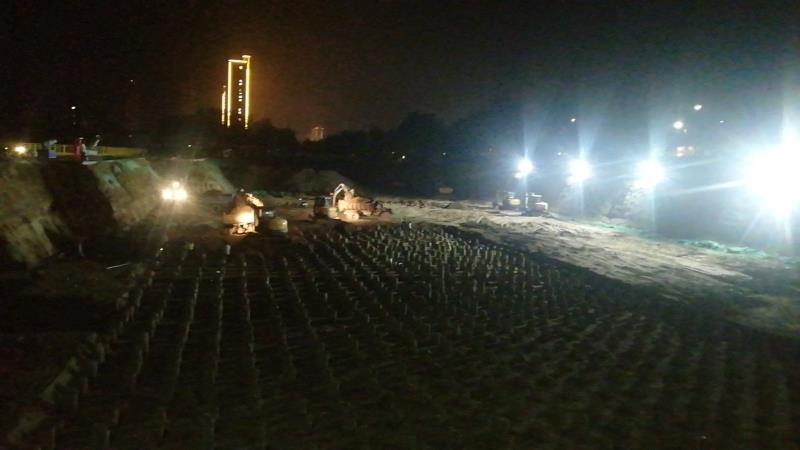 项目部积极响应公司号召,开展“大干五十天,项目创发展”活动,活动期间,项目部贯彻5+2、白加黑的拼搏精神,全面进入紧张而忙碌的施工状态,现场正在大面积地清理桩头,项目部将人员分组分片,使机械与人工合理配合。在后续的基坑清理中,项目部超前谋划,精心组织,加强机械设备的组织力度,明确施工现场的重难点,确保目标任务的落实,以保证施工生产任务如期完成。