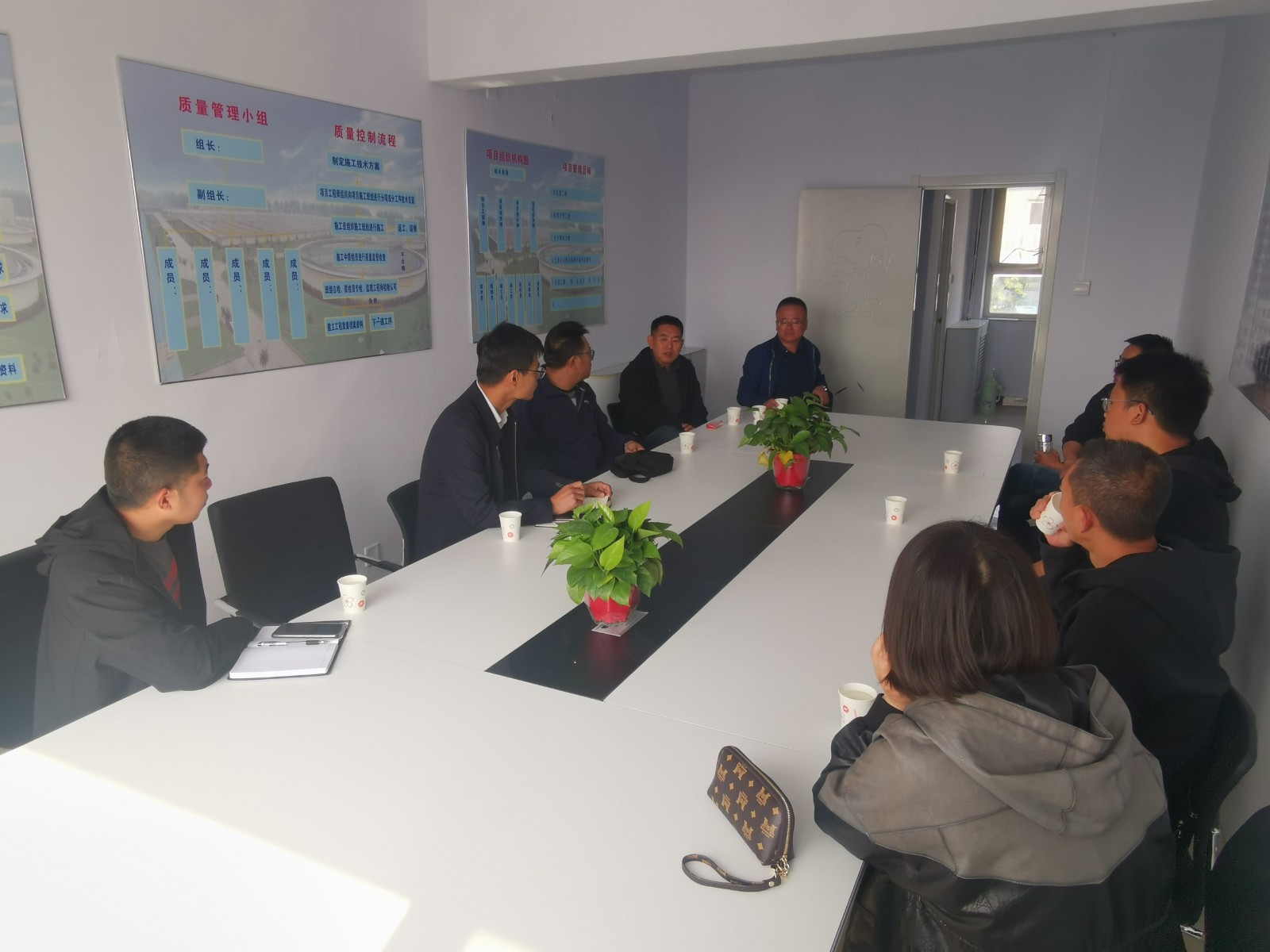 10月12日上午,张家口市鸿泽排水有限公司总经理张琦、副总经理高志清及代建相关负责人一同到一分公司张家口管网项目检查工作,项目经理王志文、刘立强一同参加。