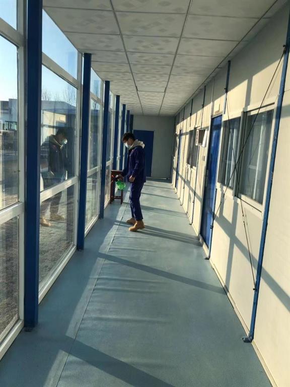 从5日开始,每天早上六点项目经理路晓鹤就已经开始组织进行项目部消毒工作,大家分工明确、齐心协力,先用84消毒液对办公室、会议室、食堂宿舍等全面消毒。早中晚进行办公室的开窗通风与垃圾清理。为了防止厂区内有输入病列,王集水厂项目部对进出车辆进出人员进行严格的测温登记,并且非特殊情况厂区内管理人员不得外出。在就餐方面实行错峰就餐制度和一人一桌制,减少接触降低传染几率。对于此次防疫工作,王集水厂不管是在防疫物资的储备还是在后勤生活的保障上都早已做好了充足的准备。