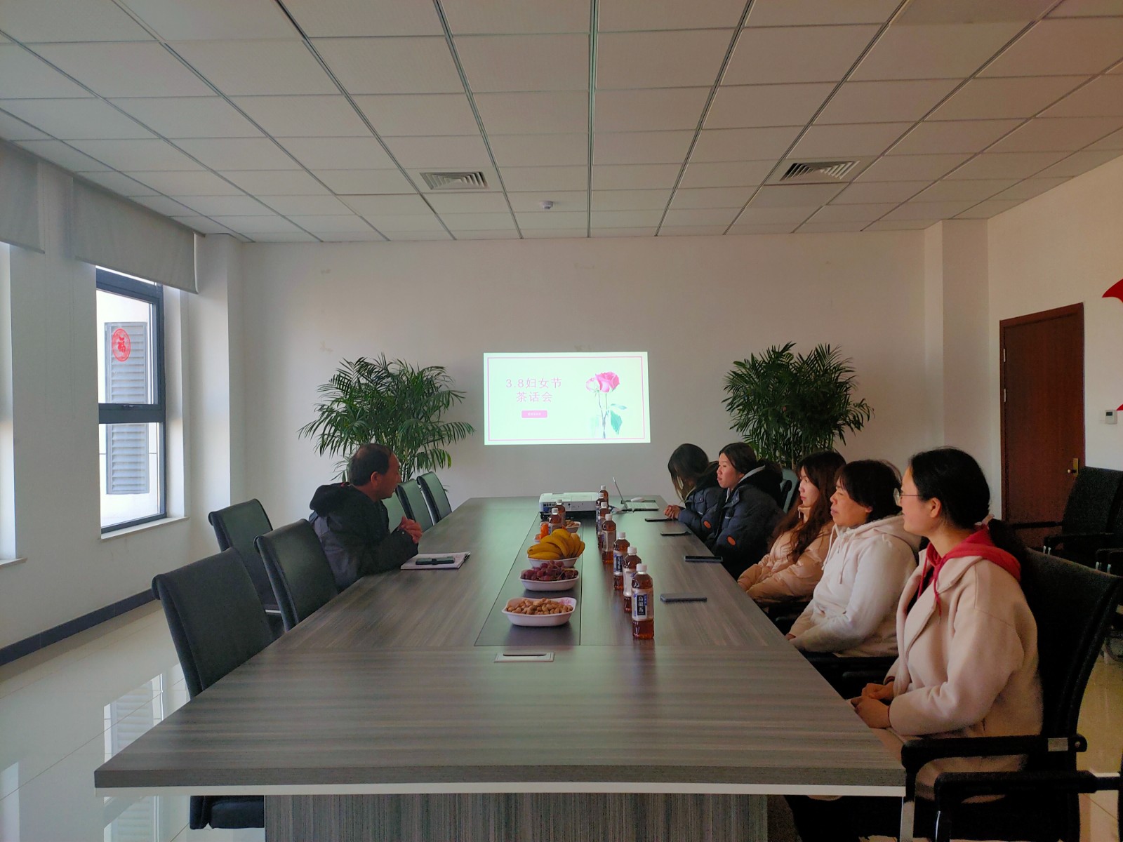 在莒城湖水厂会议室,项目书记习永军向项目上全体女职工表示节日的问候和良好的祝愿。他说在这个欢乐的节日里,希望大家继续在今后的工作中不断提高自身素质,以巾帼不让须眉的风采,在平凡的岗位上做出不平凡的业绩,为公司的高质量发展再立新功。