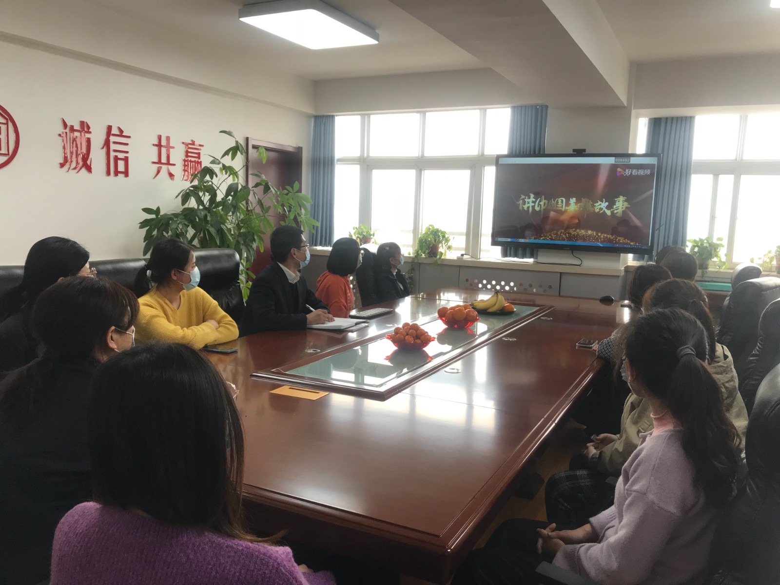 在分公司机关,分公司工会主席曹占杰向各位女职工送上节日的祝贺以及亲切的问候,并向大家推荐观看了“时代楷模”张桂梅校长的先进事迹。张桂梅同志40多年孜孜不倦,以无私、从容、执着、奉献、坚忍不拔的精神扎根贫困山区教育一线。她,四处奔走,创办了全国第一所免费女子高中。12年间,她坚持家访11年,行程十余万公里,让1800多名女孩考入大学,走出大山。张桂梅在平凡的岗位上奉献着自己,无私的燃烧着自己,以“无我”的境界诠释一名共产党人的初心和使命。看完视频短片后,大家在交流讨论中无不为张桂梅老师爱岗敬业、无私奉献、执着奋斗的精神所感动。