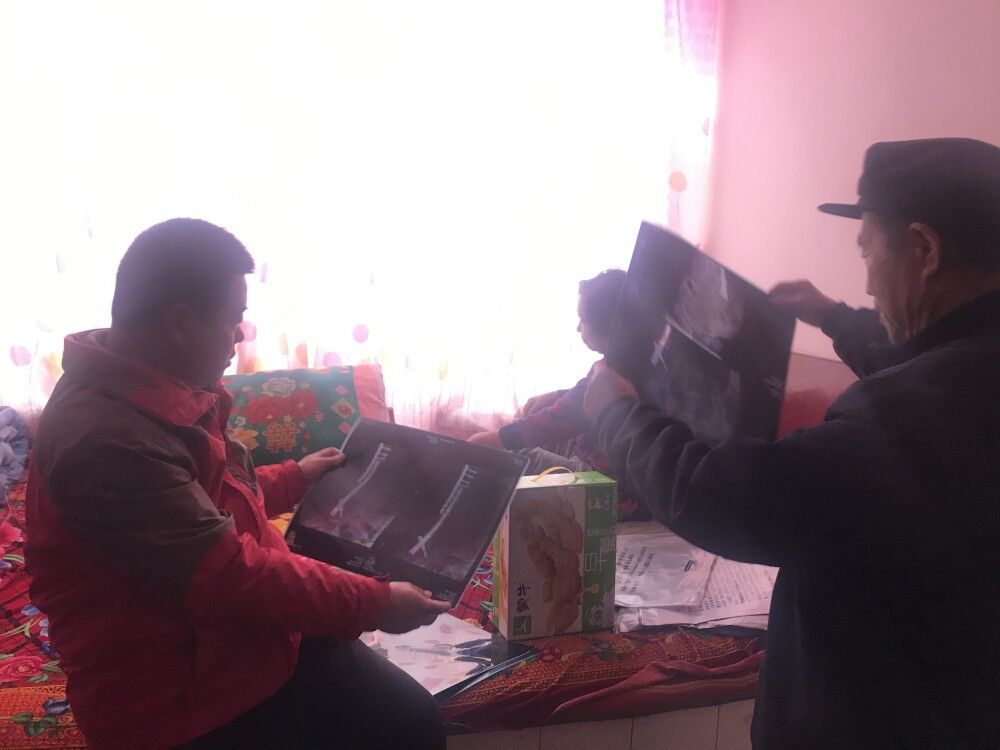 3月7日,公司驻村工作队成员看望慰问了板铺村马宝海的妻子王清花。王清花老人年事已高,而且患有糖尿病。前些天,她在家中走动时不小心摔倒,导致左腿骨折,现已经过手术治疗,目前在家卧床养伤。