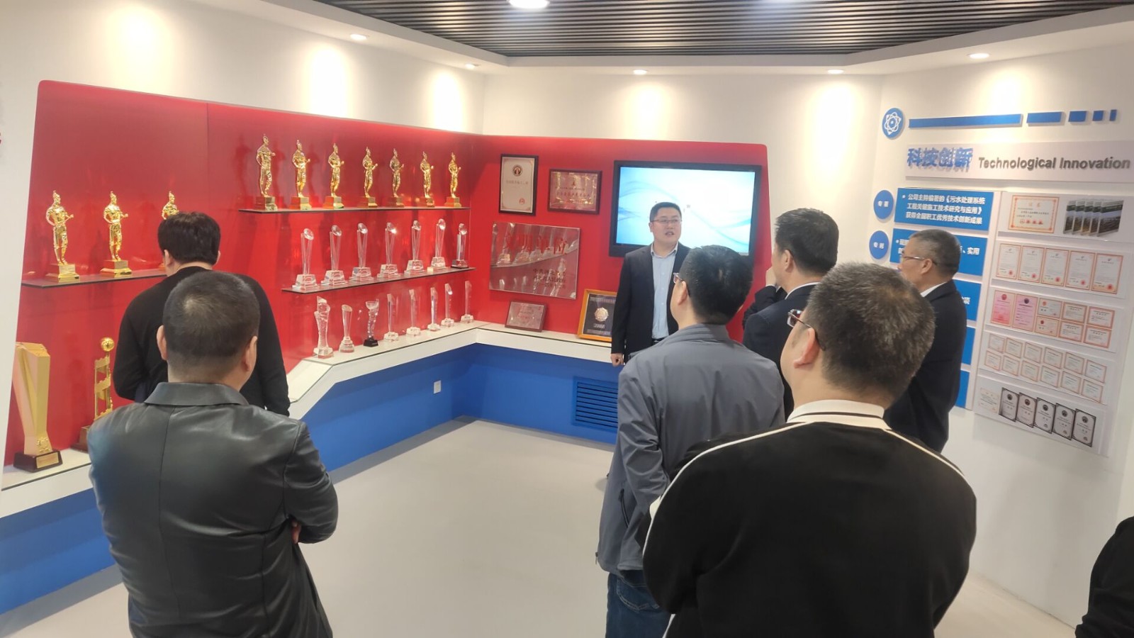 王勇对考察团的到来表示欢迎,并带领一行人参观了公司企业文化展室。李全煌就公司的发展历史、企业文化、所获荣誉、科技创新等内容向考察团作了详细介绍,同时对考察团提出的相关问题进行了解答。参观中,考察团一行对公司的建设和发展成果表示了赞许。