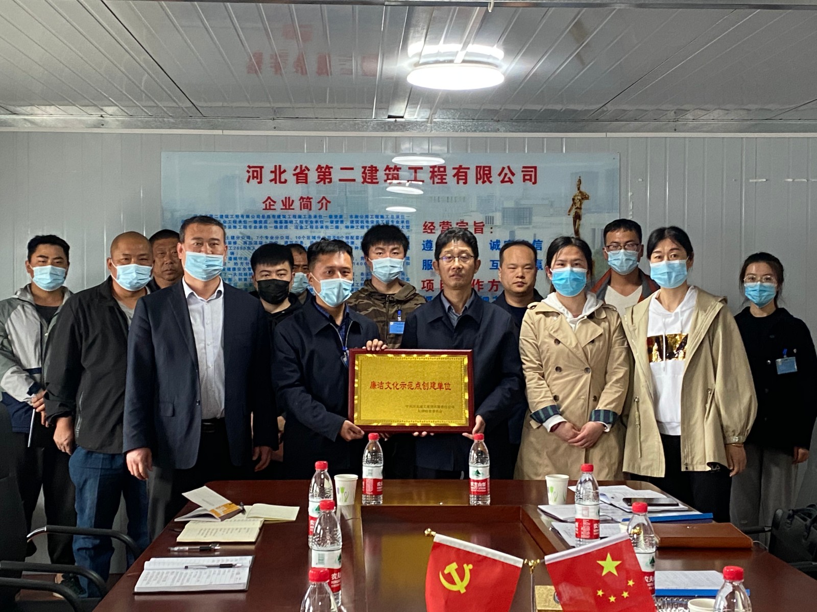 4月21日,集团纪委书记吕书文、纪委副书记张煜一行到一分公司晋州市委党校搬迁项目廉洁文化示范点创建授牌。公司党委书记、董事长郑青昌,党委副书记、纪委书记、工会主席孙建格,纪委副书记吴建华,一分公司经理郑毅等参加。