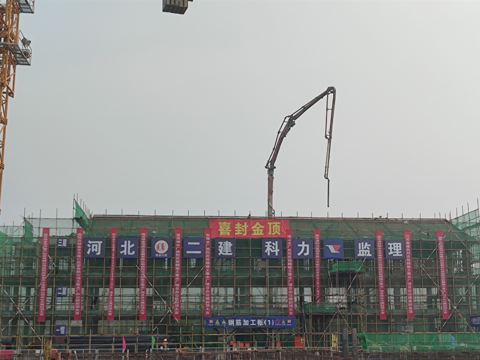 4月27日,八分公司赣榆王集水厂项目办公楼顺利封顶,项目部全体成员与建设单位相关负责人、监理单位相关负责人一同参加了封顶仪式,同时建设单位和监理单位也发来贺信。