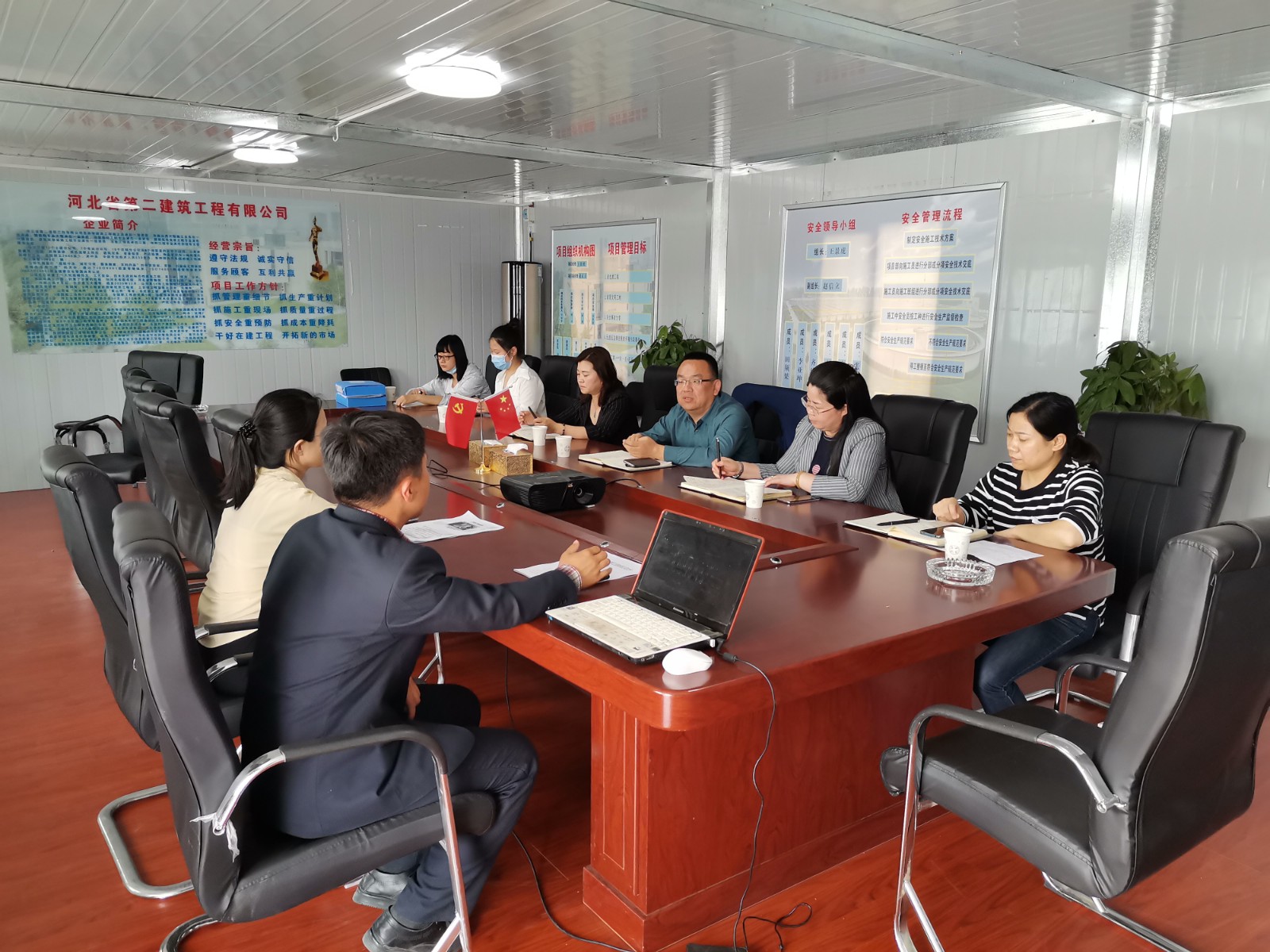 会上,项目经理赵信立对集团国际公司一行的到来表示热烈欢迎。财务总监边防说明了此次调研的目的和希望双方交流的几方面问题。随后,双方围绕项目部沟通协调工作、管理人员主要工作内容、薪酬待遇、工人工资发放形式、党群工作等展开交流。