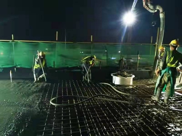5月30日晚上,夜幕下的三分公司平泉水厂工地呈现出一片热火朝天的景象,项目管理人员与工人一起奋斗在施工一线,塔吊灯光照的施工现场宛如白昼,泵车的轰鸣声仿佛在给他们加油打气。走进施工现场,工人们干得忙而不乱,项目部管理人员参与其中,将紧锣密鼓的工作安排得井然有序,同时也为工程的安全和质量提供了强有力的保障。