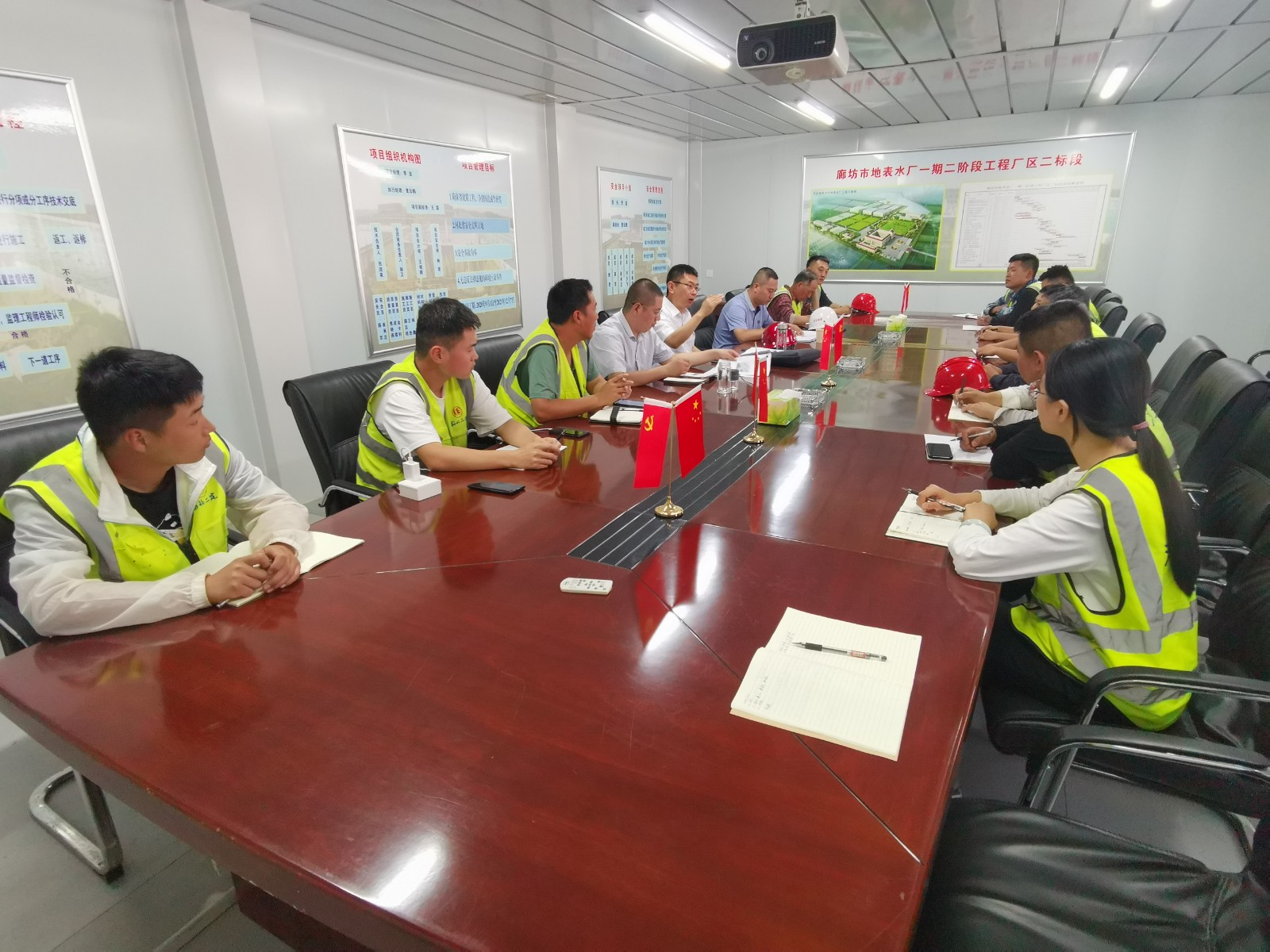6月17日,公司总工程师李波、安全总监李炜一行人到四分公司廊坊市地表水厂项目检查指导工作,分公司经理丁浩一同参加。