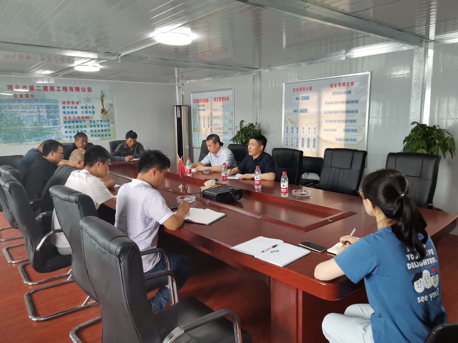 现场检查完毕后,王景虎来到会议室组织召开了座谈会。王景虎提出以下要求:一是安全要无死角,加强监督管理,进一步提高安全意识,加强安全教育,采取有力措施,确保安全生产。二是在保证安全和质量的前提下,加快施工进度。三是做好扬尘治理工作,现场裸露土方全部覆盖,让现场每一处都干净。四是在成本控制上要将材料用量的考核与技术质量的控制相结合,做到精打细算。五是做好疫情防控、消防、防汛、极端天气应对工作。