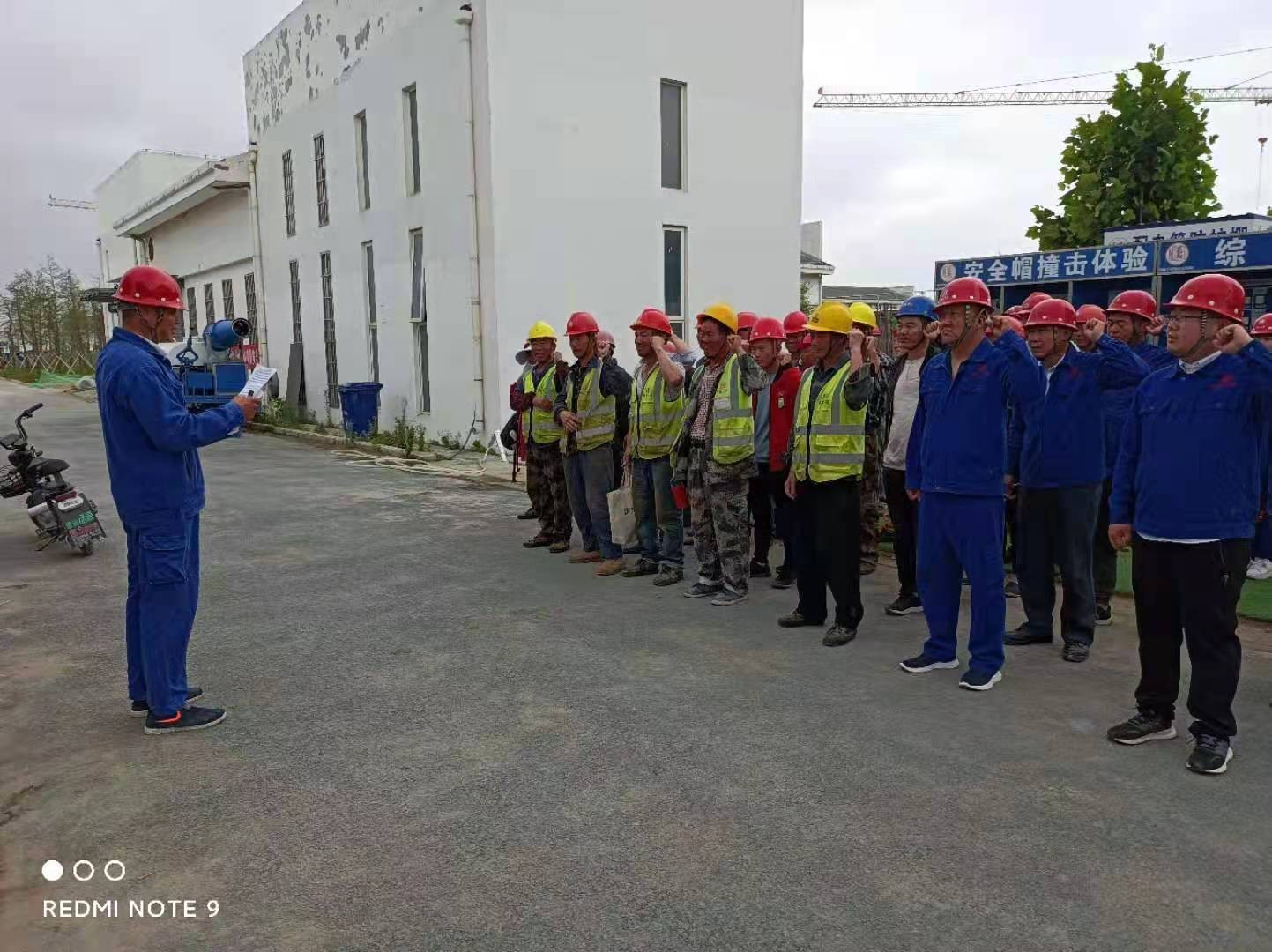 在莒城湖项目,分公司经理田朝辉带领项目部全体职工进行了庄严的安全宣誓,并在安全生产横幅上郑重签名,将安全生产月活动推向了新的高潮。一句句铿锵有力的誓言回荡在水厂上空,与清脆的鸟鸣交相辉映,这是我们向全社会、向企业、更向自己所做出的郑重承诺。