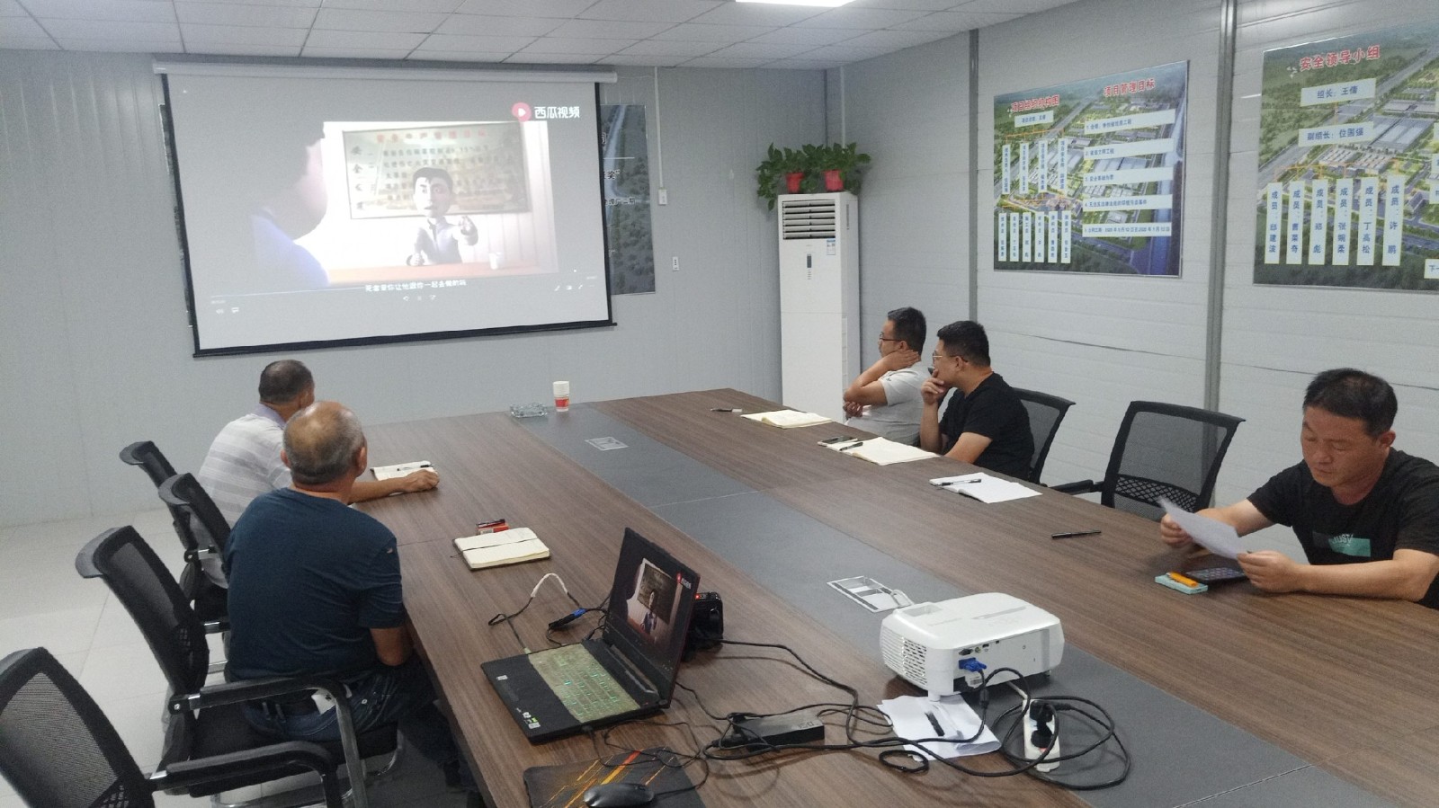 视频观看结束,盐龙湖水厂项目经理郑彪对视频中的案例和施工现场的实际情况进行了对比,项目全体管理人员认真地分析了存在的风险隐患以及防范措施。