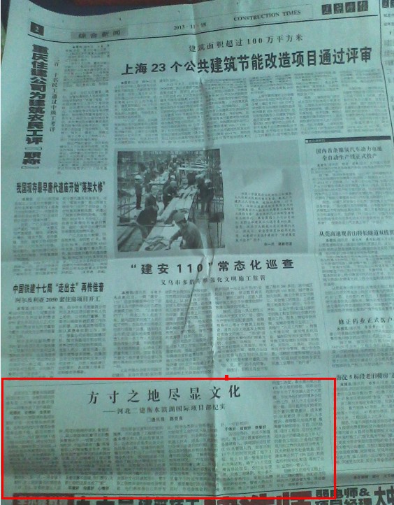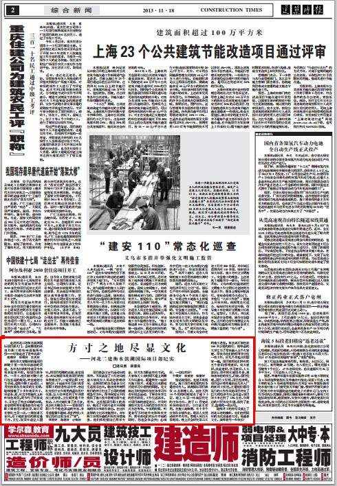 《建筑时报》报道我公司项目文化建设情况 来源: 修改时间:2013.11.25 浏览:6898 《建筑时报》报道我公司项目文化建设 2013年11月18日,《建筑时报》第2版以《方寸之地尽显文化》为题,报道我公司项目文化建设、职工小家建设事迹。 上一条 返回列表 下一条
