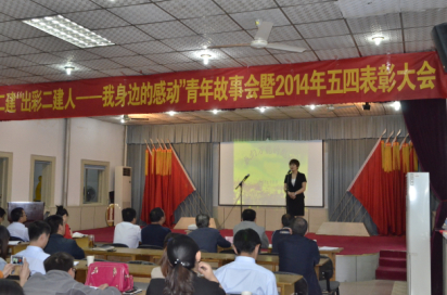 火红五月,激情满天;青春奉献,代代相传。2014年5月4日,公司团委组织举办了“出彩二建人—我身边的感动”青年故事会暨五四表彰大会。来自各直属团组织的十位讲述者,通过ppt、音乐等多种手段,深情讲述和演绎了精彩的故事。